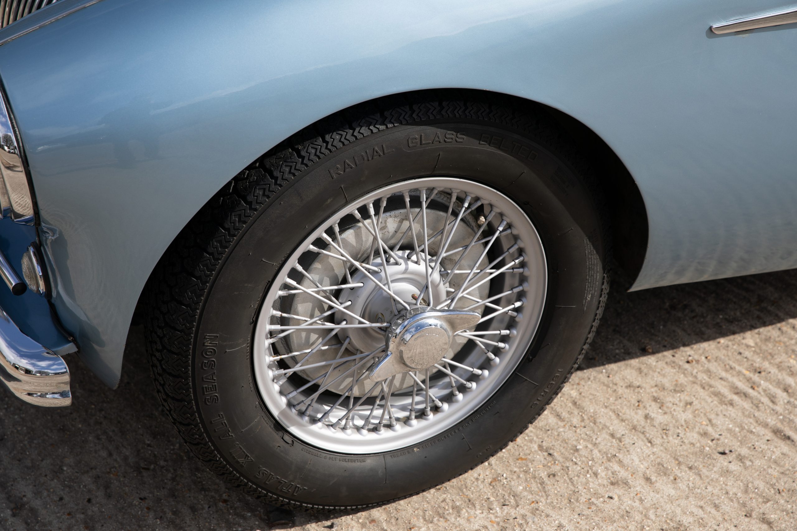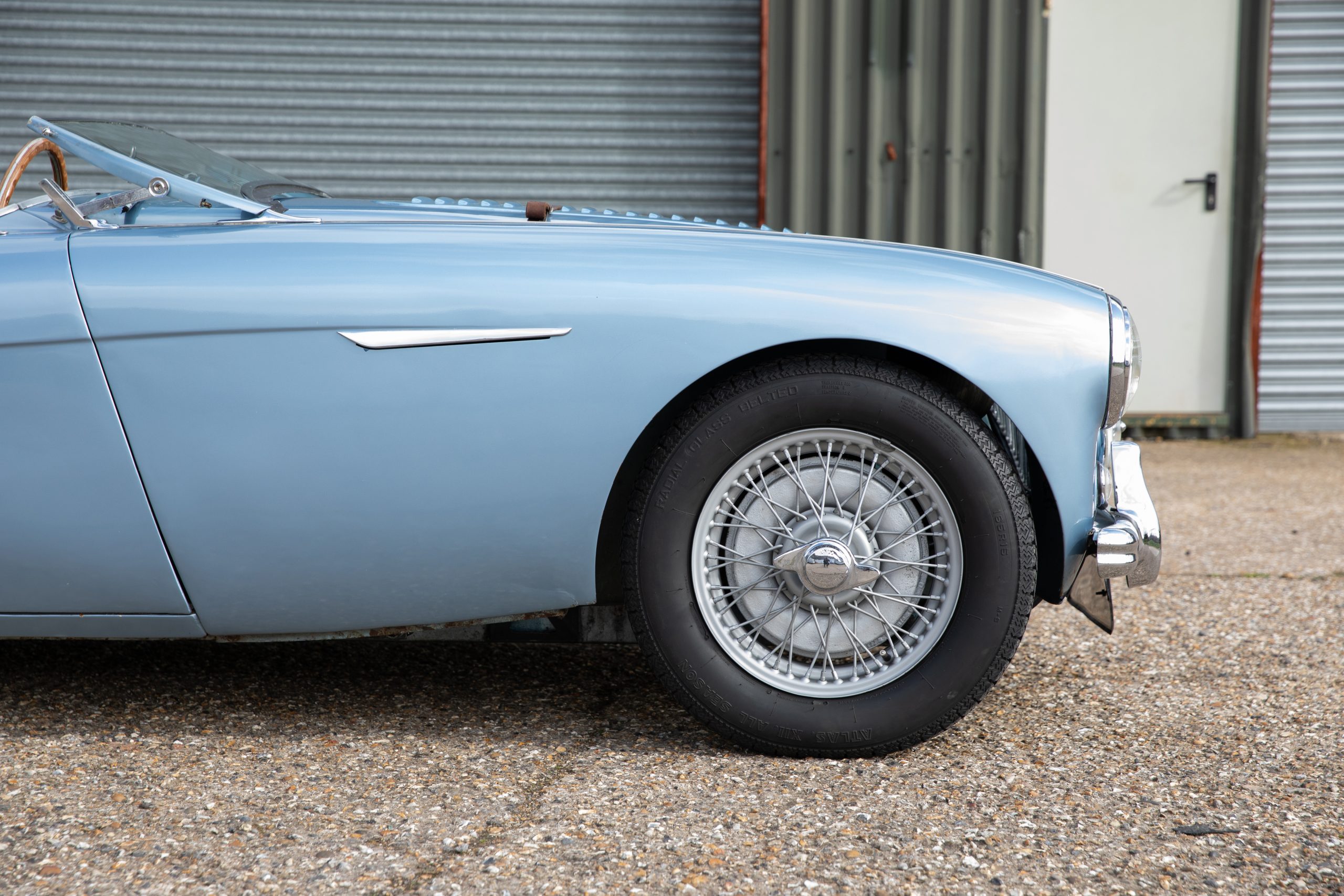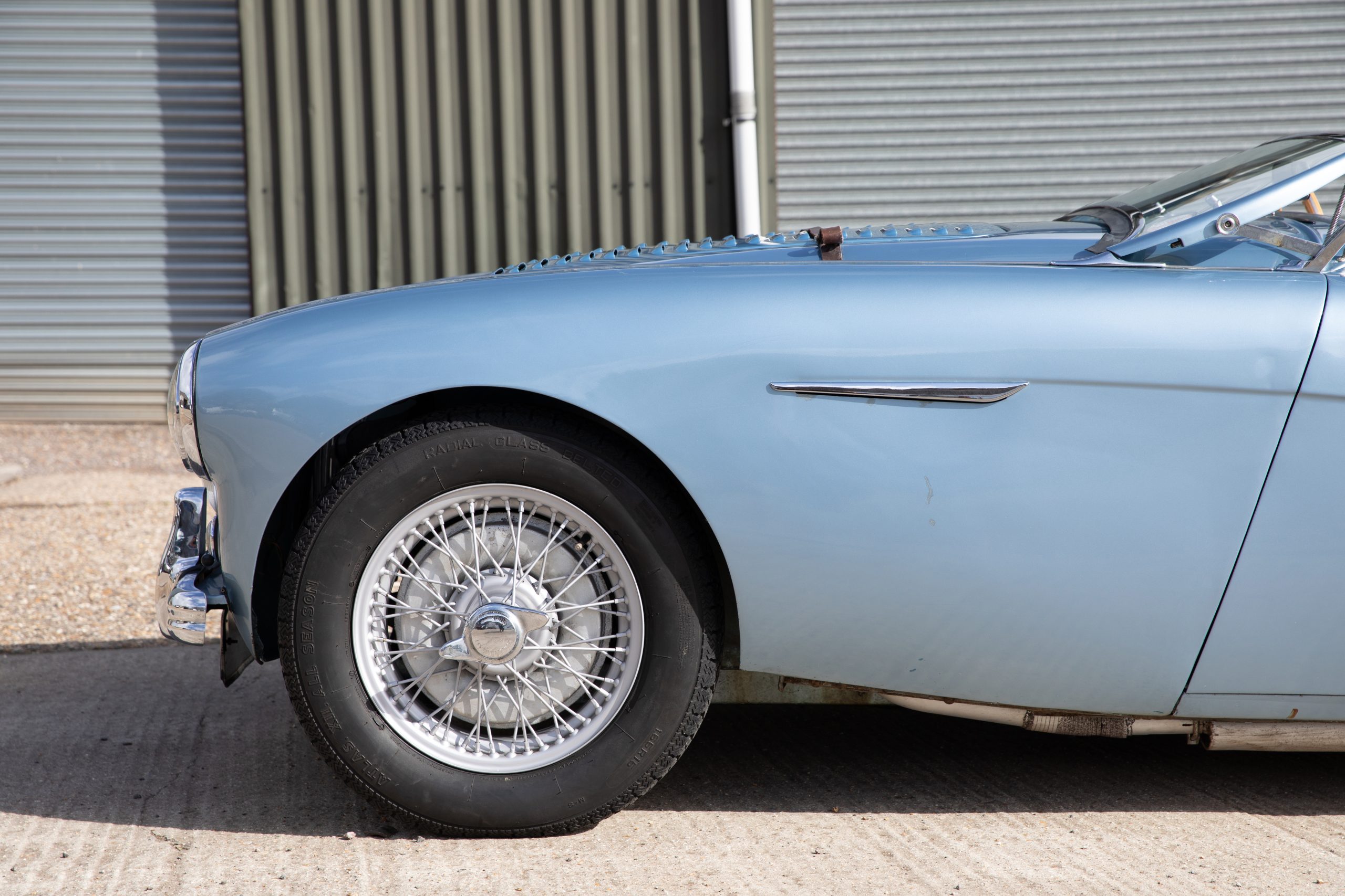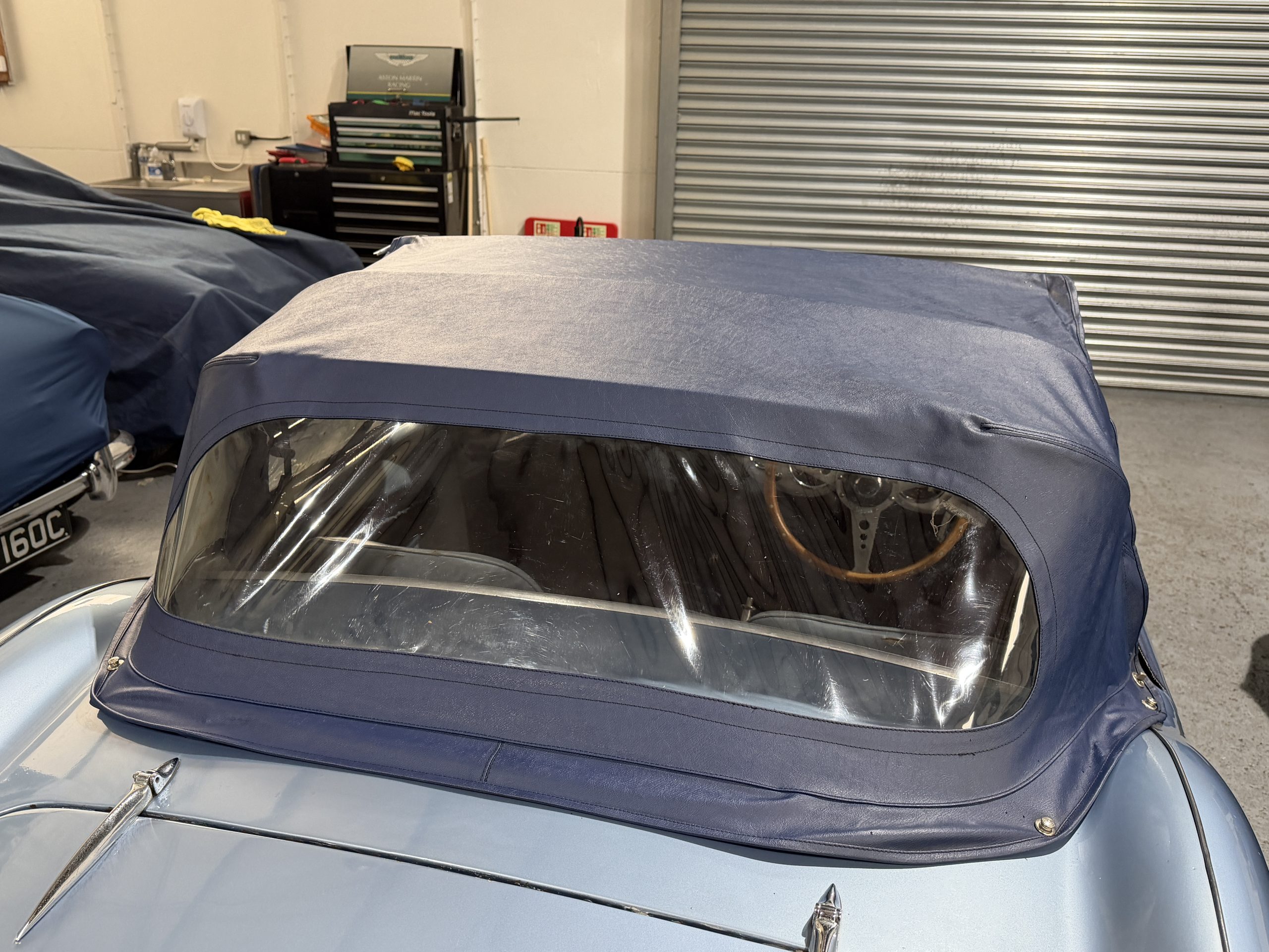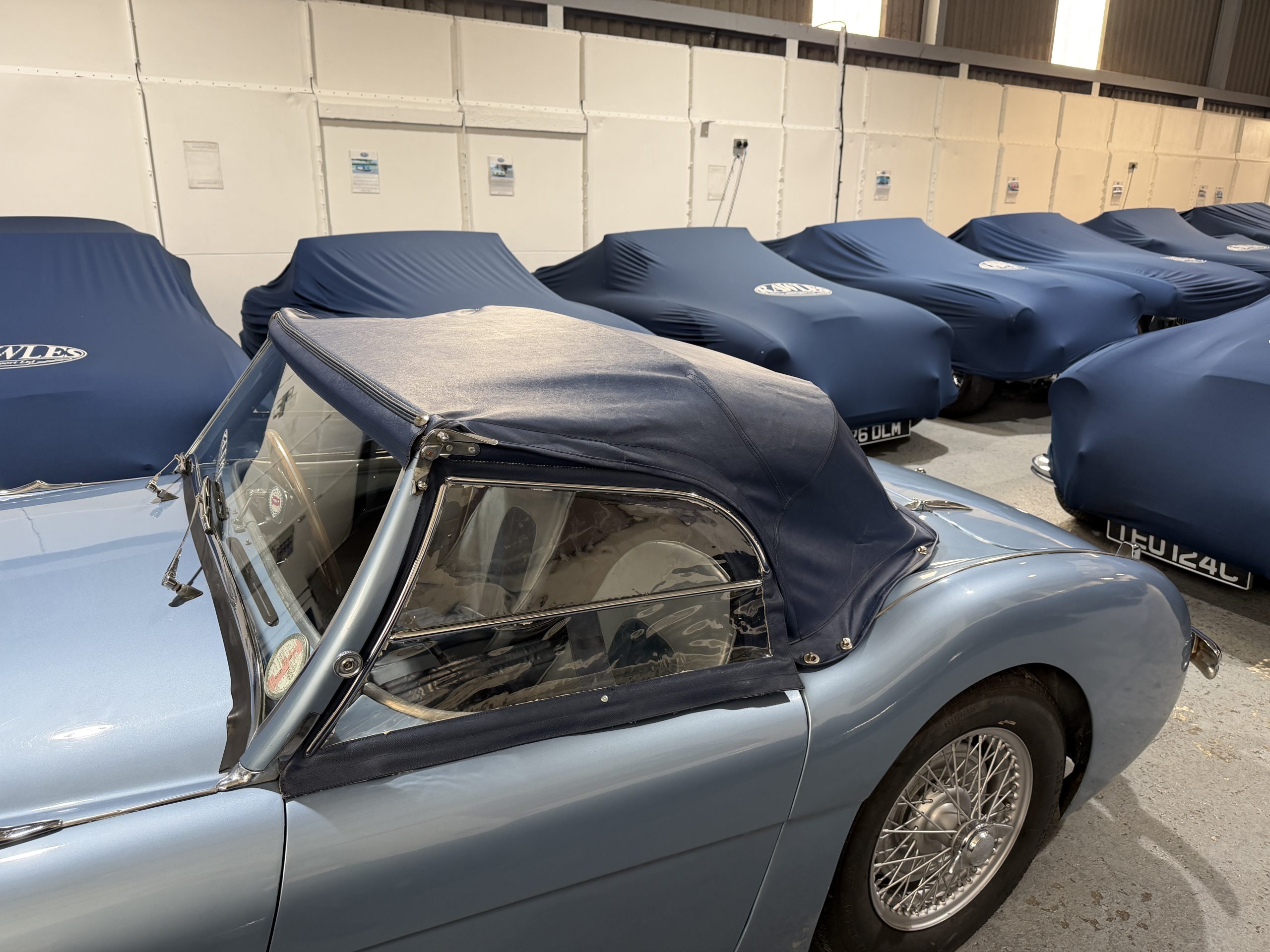 Restored in 1992-1994 this beautiful car has covered just 7,800 miles since and was previously property of a former garage operator who spent much time maintaining and improving the car where he could. This includes 100M carburettors, 100M cold air box and ram air pipe and a 100M louvred bonnet plus the addition of original twin Lucas spotlamps. In the last 5 years an aluminium head including uprated valves has been fitted to the engine giving improved performance to the already improved engine. The soft top is also understood to be new around this time and does not appear to have been used, the side screens are new and unused.