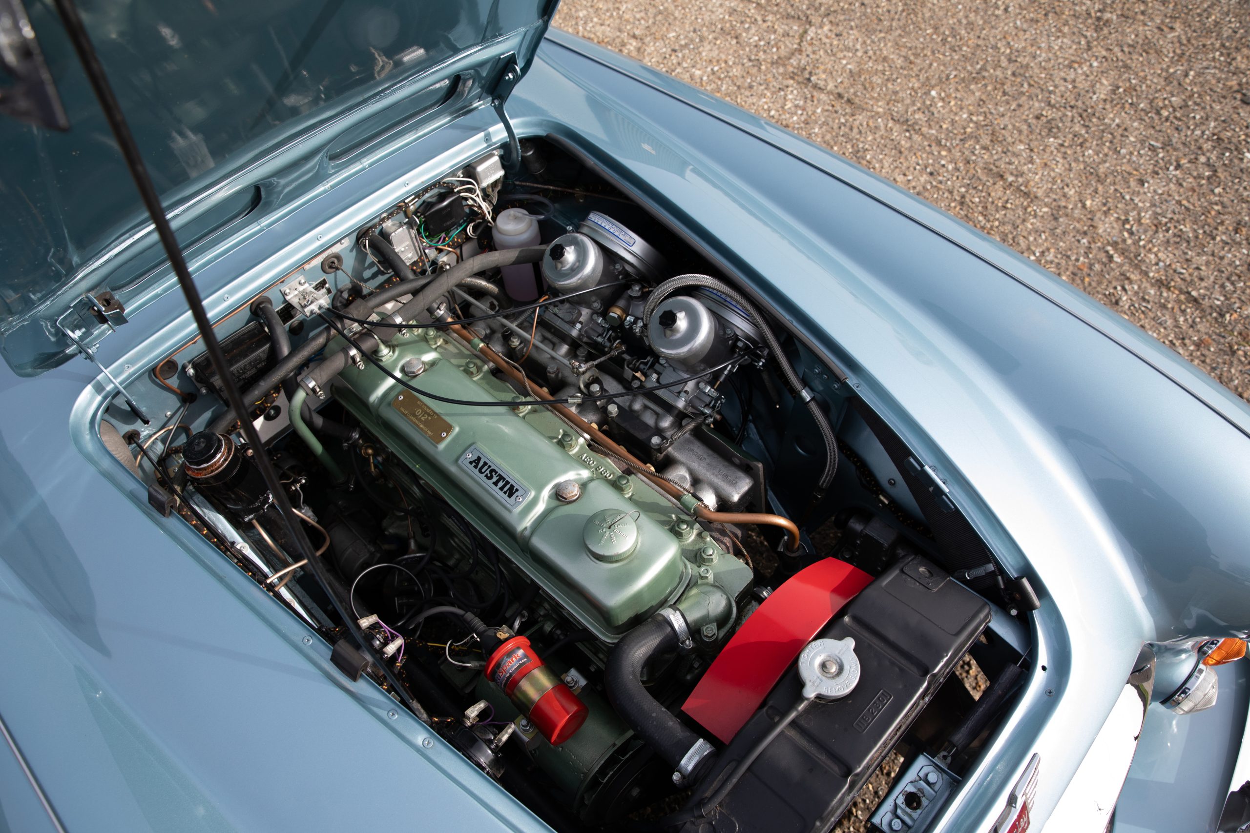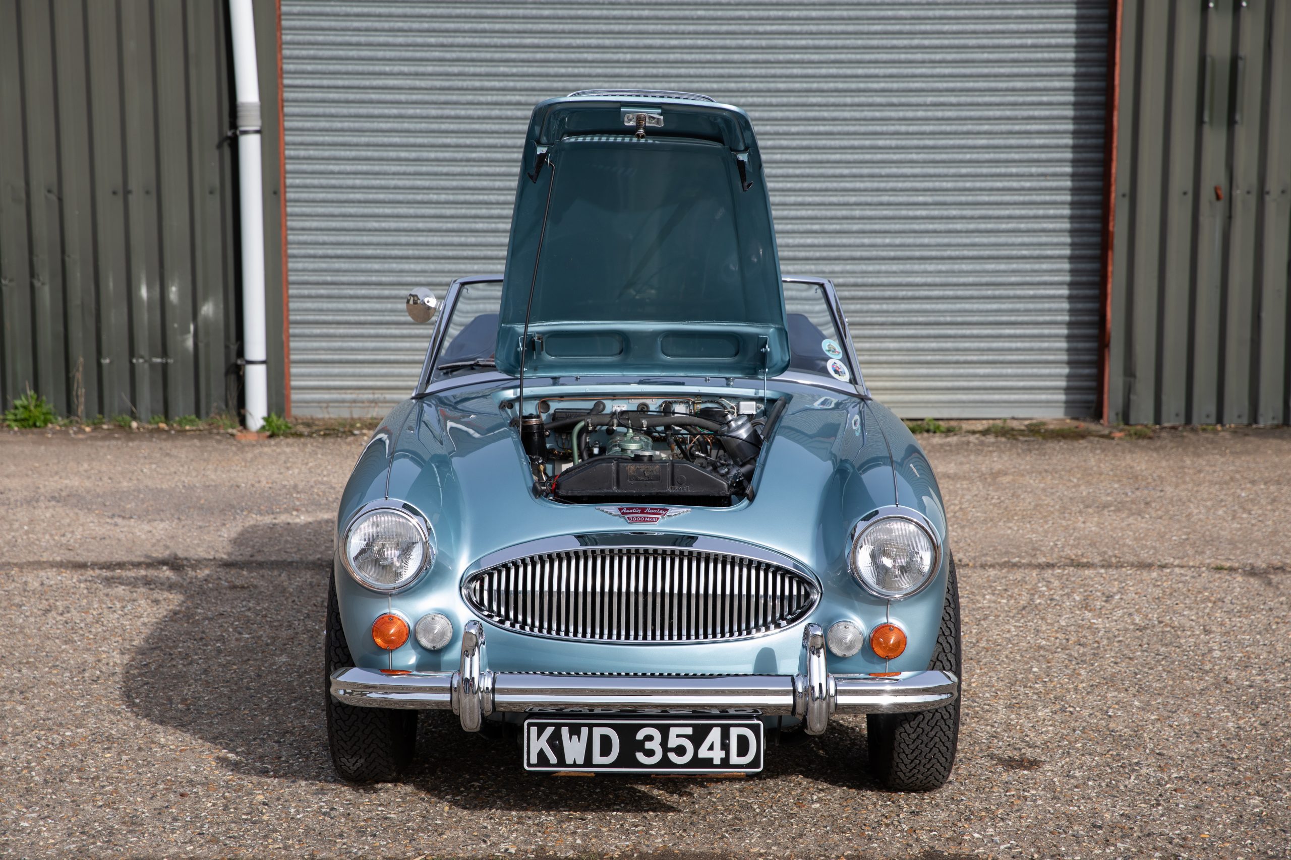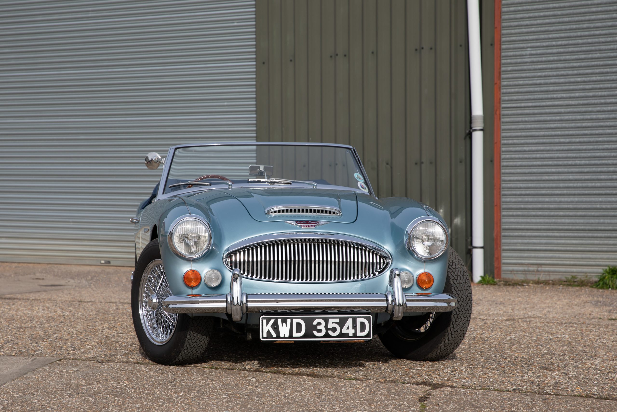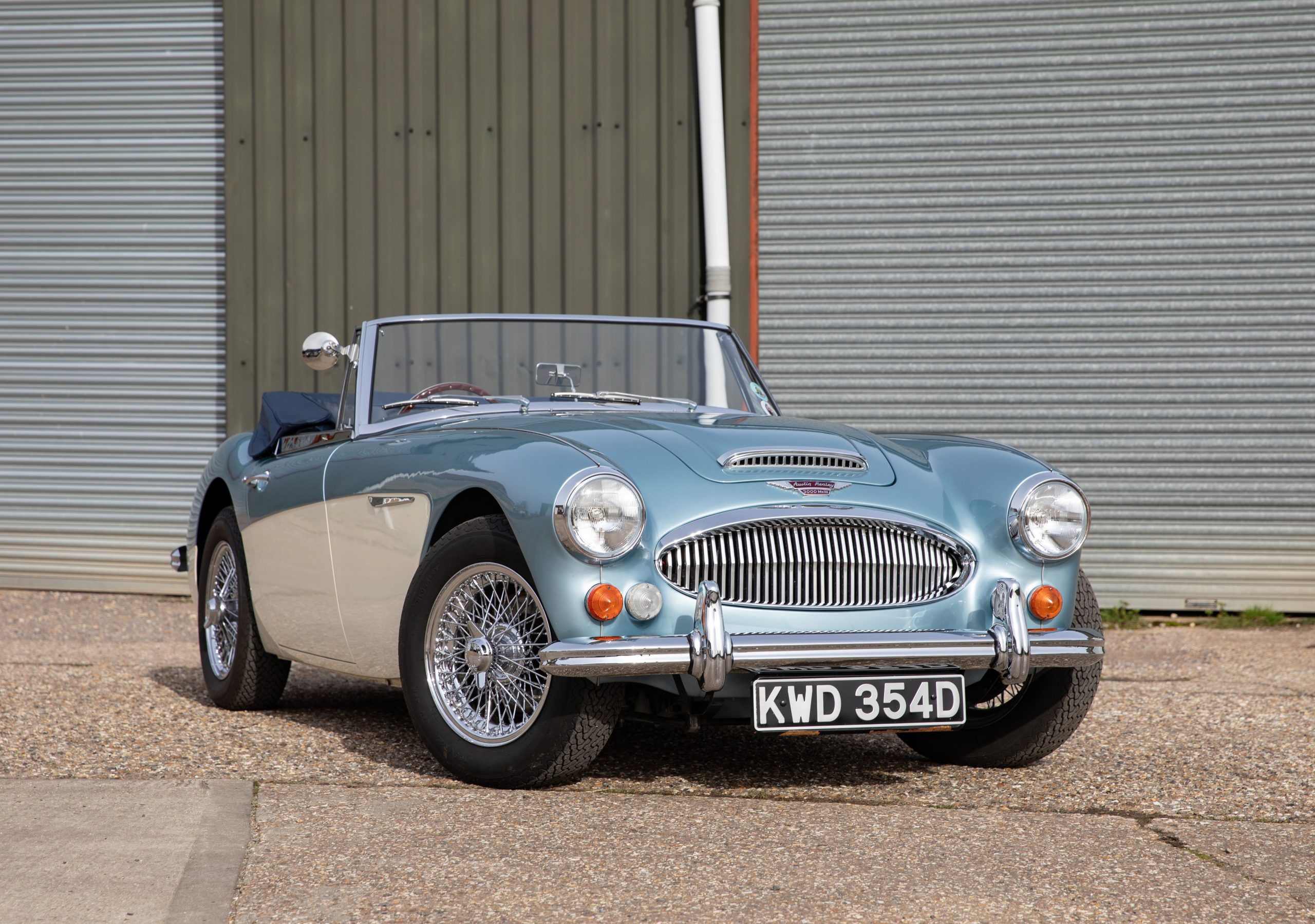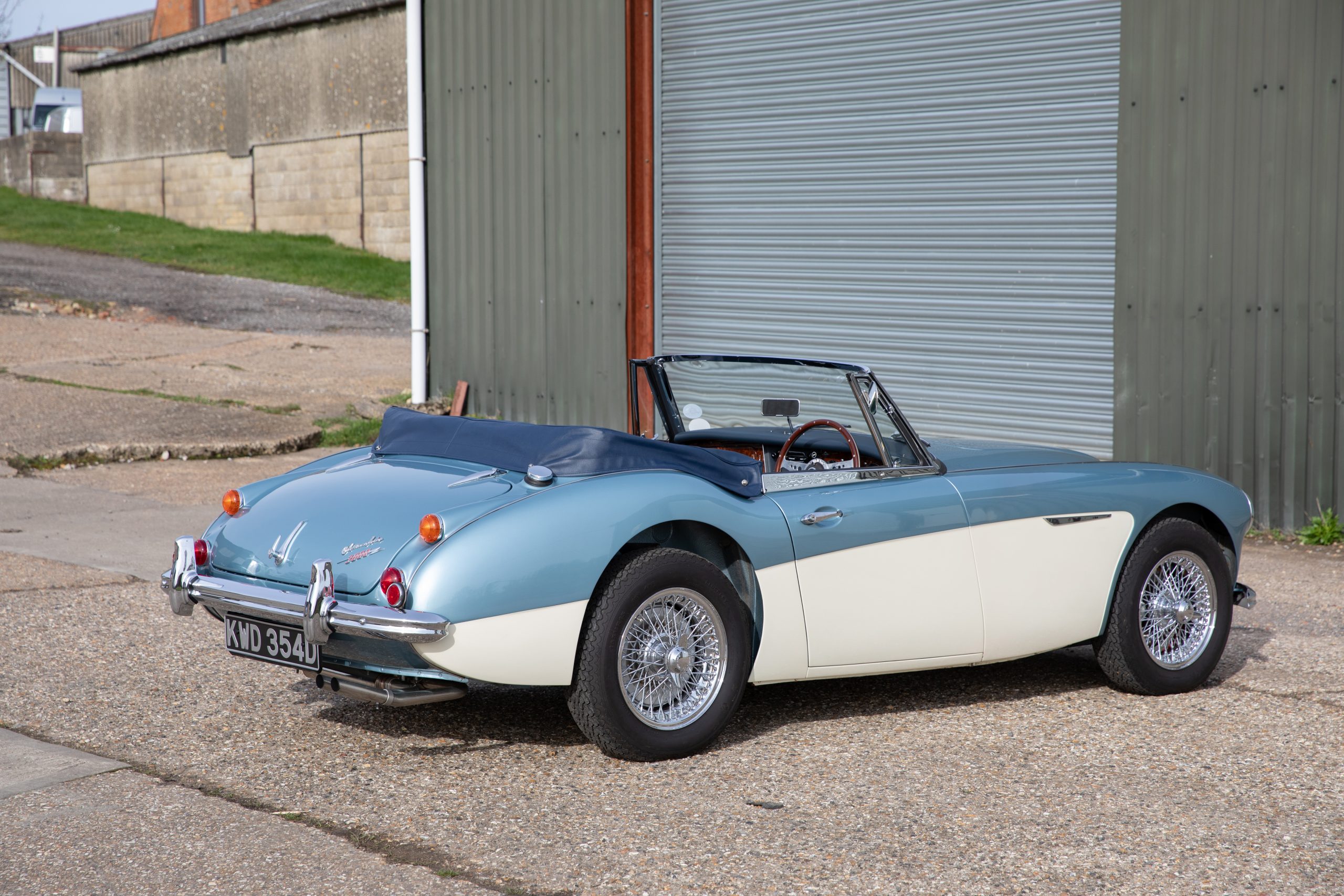 In conclusion KWD 354D is a stunning example of the Healey 3000 MkIII finished in the chocolate box Healey Blue over Ivory colour combination, rebuilt to original specification, in fine fettle and ready to go.