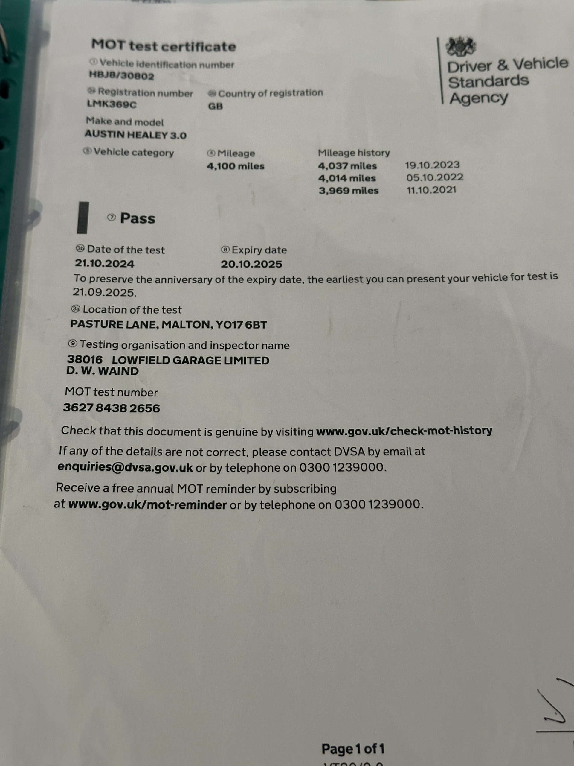 This could be the ultimate long distance touring, rally and events Healey. The car has had no expense spared in preparation and whilst it’s a quick, first class driving example, its equally impressive in presentation with beautiful paintwork, excellent bodywork, a stunning comfortable and upgraded interior and the underside, engine bay and boot compartment are incredibly clean. LMK 369C has an incredible specification and finding another Healey 3000 MKIII with this level of spec, in this condition, and this price point will surely prove difficult. It has had meticulous maintenance and upkeep and is certainly a car for the discerning buyer who really wants to use, drive and get out on the open road and cover some serious miles in a Healey. The car comes with an extensive history file to include all invoices, MOT certificates since rebuild and FIVA paperwork.