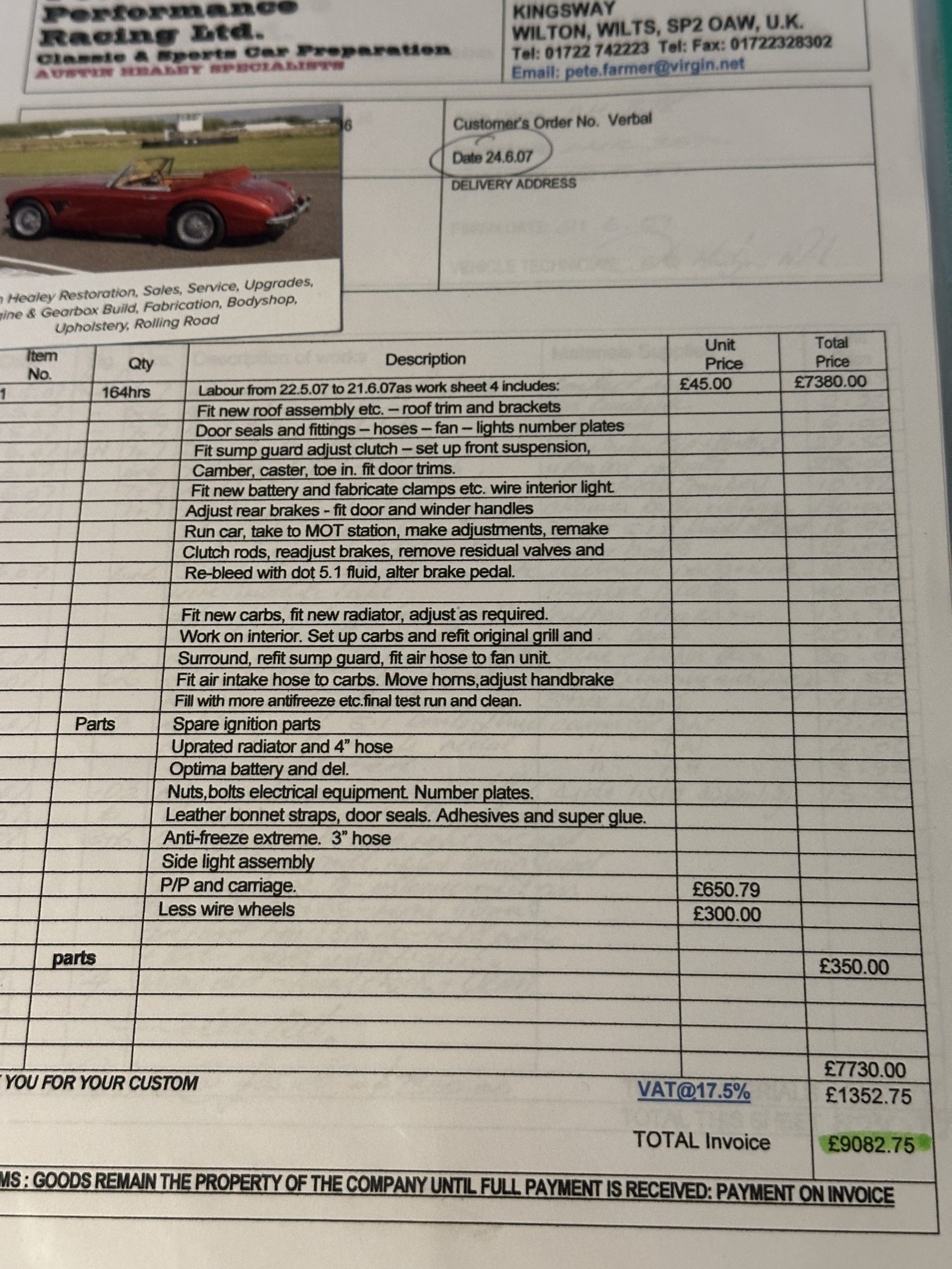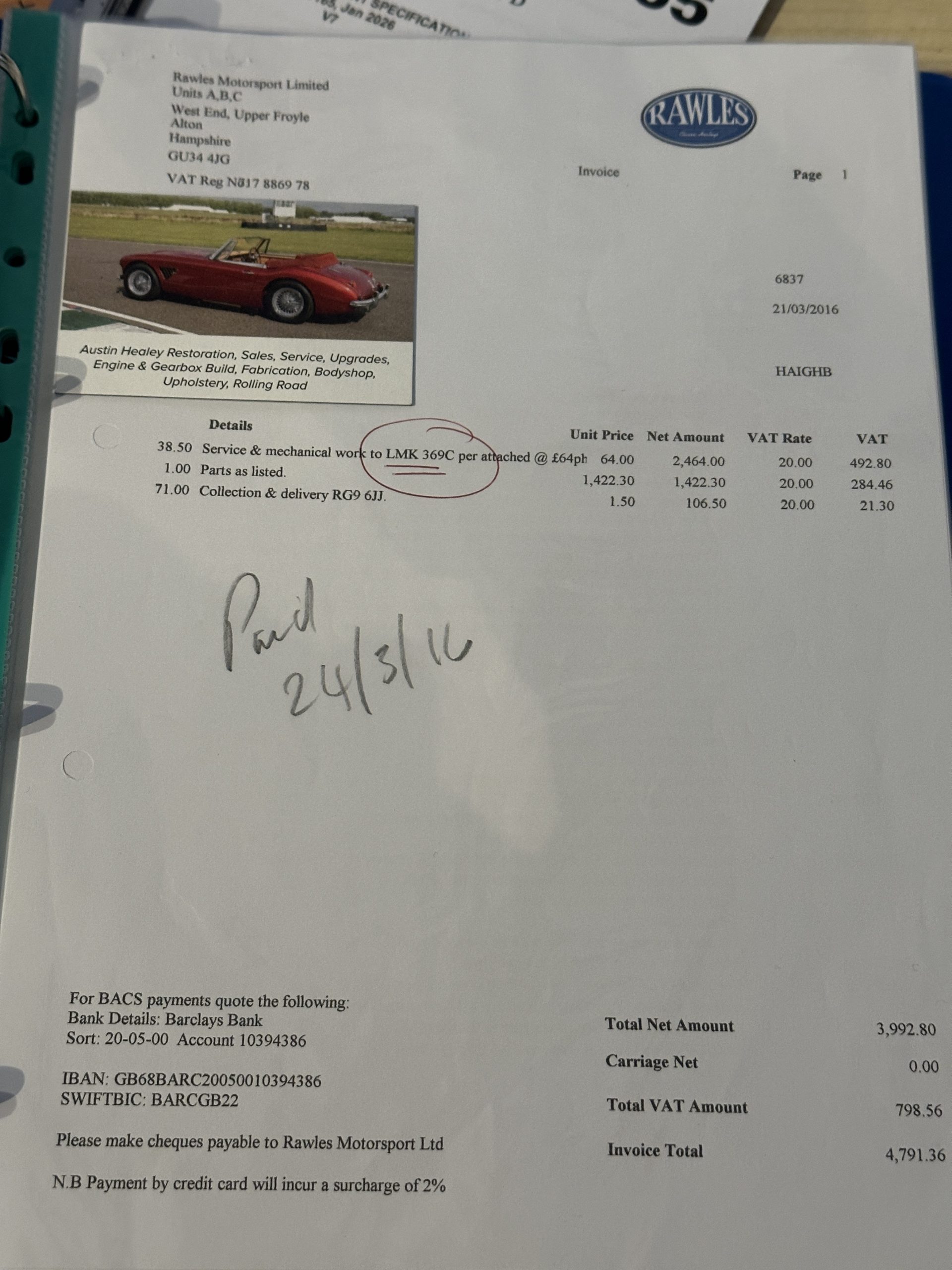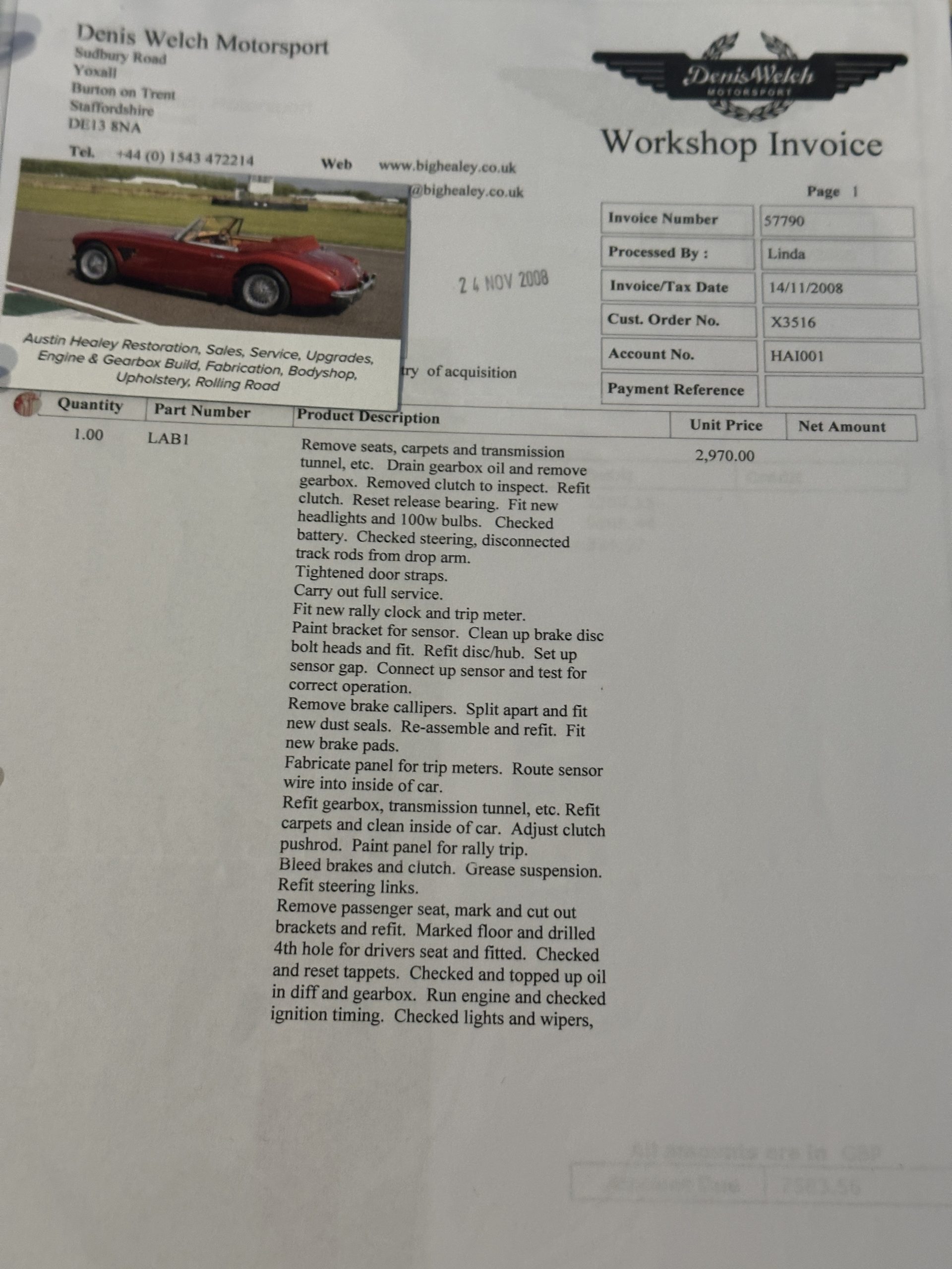 Restored by Rawles Motorsport in 2006 the car was then shipped to Denis Welch who rebuilt all the mechanicals. The car has covered just 15,000 miles since restoration with the majority of miles covered on the road. The car has been continually refreshed and extremely well maintained. As such this is a turn-key car ready to enjoy. It is reported £190,000 has been spent and the restoration (£70,000), maintenance and upgrades (£40,000 at Rawles Motorsport).